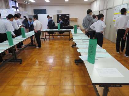 本日、土曜授業として文化発表会の展示の部を行いました。学級ごとに時間を決めて、すべての展示を順に見学し、最後は自由見学をしました。