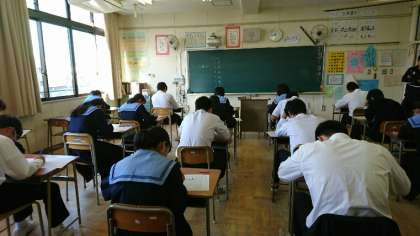 3年生第2回実力テストを行っています。英語、国語、社会、理科、数学の5教科と英検IBAを行います。