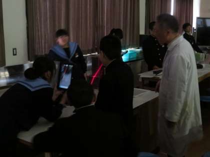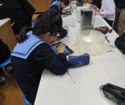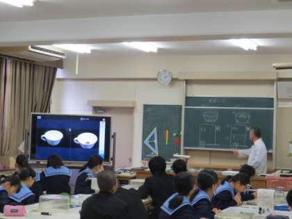 空気と水の境界を光が進むとき屈折することを調べる実験を行い、それによって水の中にある物体が浮かび上がって見える現象の説明画像を提示しあいました。