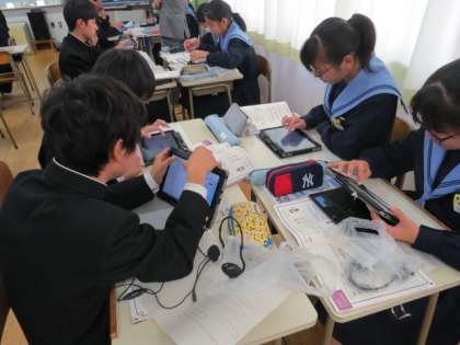 アプリケーションソフトを使い、リズムパターンを作り、構成を工夫してグループで言葉によるリズムアンサンブルを作りました。