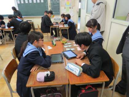 3年間の既習の文法事項の確認と、英語の音声を聞いて内容を理解することを、オークション形式のゲームを利用して楽しく学びました。