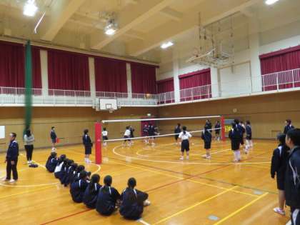 本日午後、1年生は球技大会としてソフトバレーボールを行いました。想像していたよりも(?)ラリーが続き、盛り上がった大会となりました。結果は5試合トータルで1組235点、2組225点のわずか10点差で1組の勝利でした。