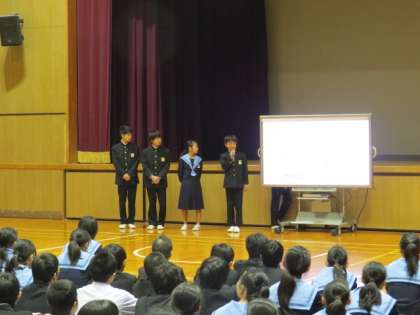 本日、終業式に先立って、生徒総会を開催しました。議題は生徒議会から提案された「生徒手帳の見直し」です。生徒会執行部の議事進行のもと、原案は可決されました。修正された内容は、来年度の生徒手帳に反映されます。