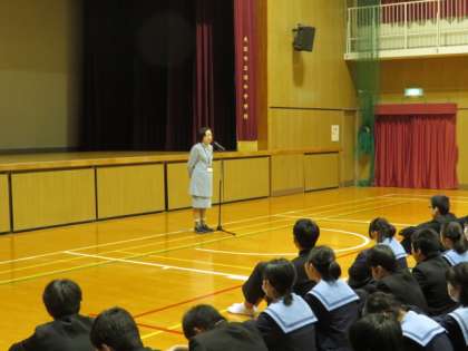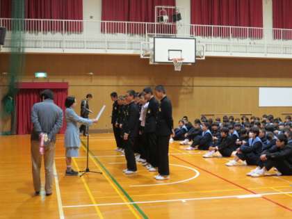 本日9日、3学期の始業式を行いました。最初に冬季休業中に行われた野球の大会の表彰を行い、引き続き、校長先生からのお話がありました。