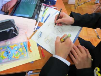 引き続き、生徒たちは「かばん会社の社員」という想定のもと、一人の先生が出した条件をもとに、その先生が大喜びするかばんを企画するという実習を行いました。