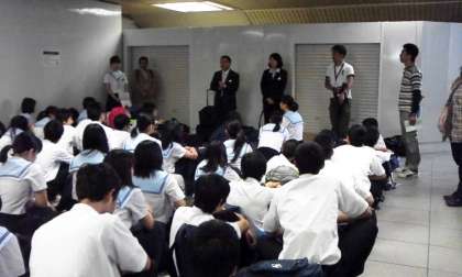 いよいよ修学旅行に出発します。 新大阪駅団体待合室で出発式を行いました。