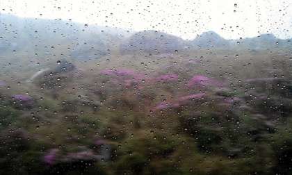 雨のため、車窓からの見学です。ミヤマキリシマが可憐に咲いています。