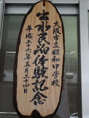 修学旅行でお世話になった鹿児島県出水市の民泊の方々からいただいた記念の焼き板とラフティングでお世話になった会社からいただいた郷土玩具「きじ車」を紹介します。