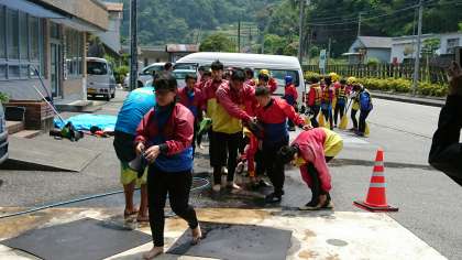 ラフティングを終えて、昼食場所に向かいます。ほどよく疲れて、お腹もすきました。