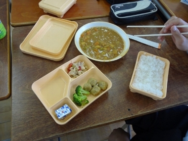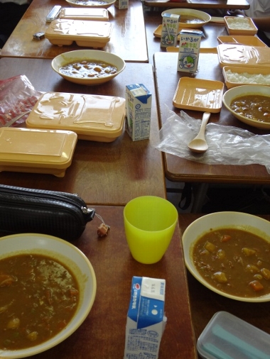本日は、初めて食缶を使用しての給食でした。全員給食となった1年生からは、「一泊移住でつくったカレーの方がおいしかった?」との声が…。けれども、ほぼ完食状態でした。