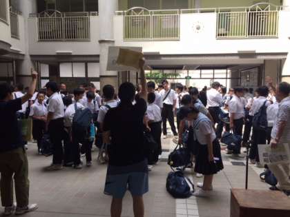 6月21日(木)に予定してました地域別一斉下校訓練を今日の集団下校を本番として実施することになりました。〔プリント配布〕緊急の地域別一斉集団下校