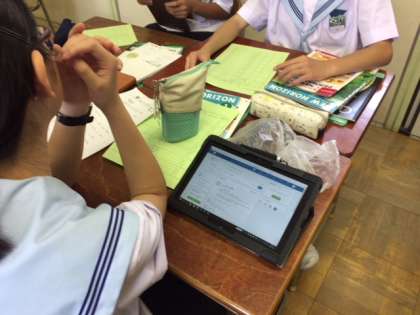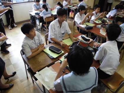 教育用SNSにグループで考えた友達の紹介を音声データで投稿しました。そして、他のグループの音声データを聞いて、誰についての紹介かを当てる授業を行いました。