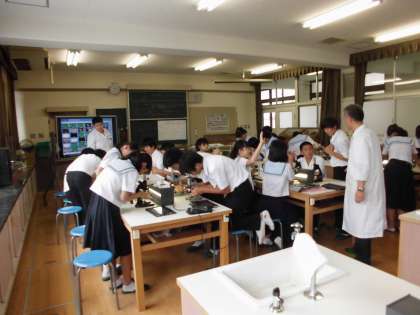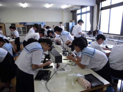 観察方法を動画マニュアルで確認した後、観察結果を記録した画像の情報を活用し、グループでそれぞれの細胞の特徴を比較して、共通点・相違点に気づかせました。