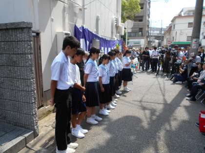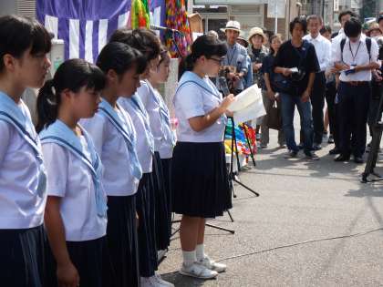本校からは10人の生徒が参加し、代表者が「追悼の意」をしっかりと述べました。他中学校も13校、小学校も4校参加しました。