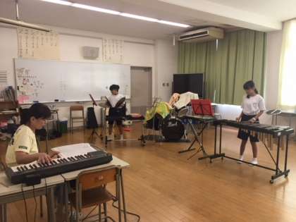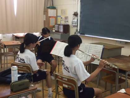 吹奏楽部は8月19日(日)に明星中学校で行われる8ブロック音楽会に向けて、1日練習で頑張っています。