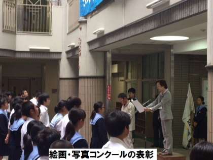 阿倍野区中学生絵画・写真コンクール〔写真の部〕で3年生の池西さんが「区青少年指導員文化部長賞」を受賞し、その表彰を行いました。入選作品は10月18日(木)まで阿倍野区役所1階ギャラリーに展示されていますのでご覧ください。おめでとうございます。