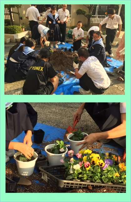 27日(土)の文化発表会(展示の部)の時に、生徒の祖父母の方や親戚のお年寄りの方に感謝の気持ちを込めて花苗鉢植えをプレゼントをする恒例の行事があります。