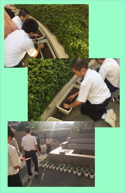 学校元気アップコーディネーターさんの準備と指導のもと、子ども達は丹精を込めて植え付けました。