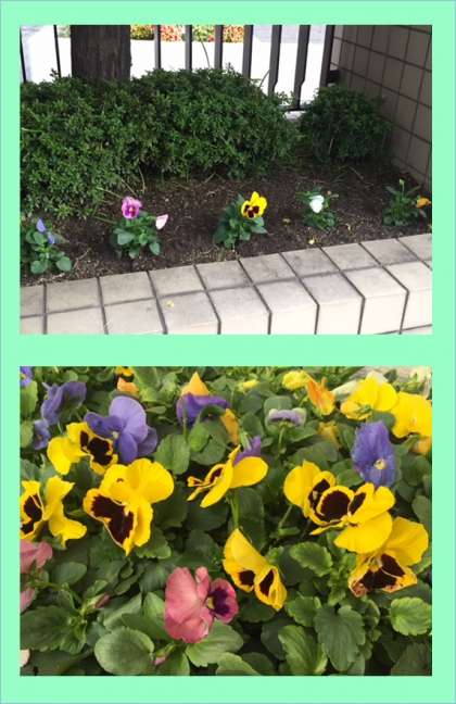 一昨日に、ふれあい委員がパンジー・ビオラの花苗とチューリップ・ヒアシンスの球根を植えました。