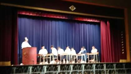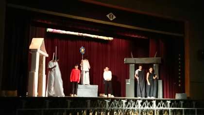 学年の取り組みは2年生、3年生、1年生の順でした。幕間の準備や背景、大道具、小道具の出し入れなど、まだまだ工夫が必要なところもありますが、かなり仕上がってきました。本番が楽しみです。
