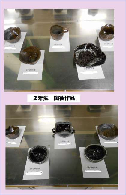 また、2年生の校外学習で作った陶芸作品も展示していました。