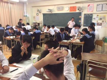 文化発表会で生徒議会のメンバーを中心に演じた劇「何もしていないのに・・・」を題材として、3年生が各教室でいじめについて「加害的立場」「被害的立場」「同じ場所にいる立場」から、いじめを防ぐ言動について考えました。また、その場に居合わせた時の自分自身の気持ちに向き合い、どのような行動をとることがいじめを防ぐことにつながるのかをグループで意見交換しました。いじめは加害生徒だけでなく周りが無関心であることが問題なんだという考えに辿りつきました。すべての生徒が元気に楽しく過ごせる学校にしましょう!