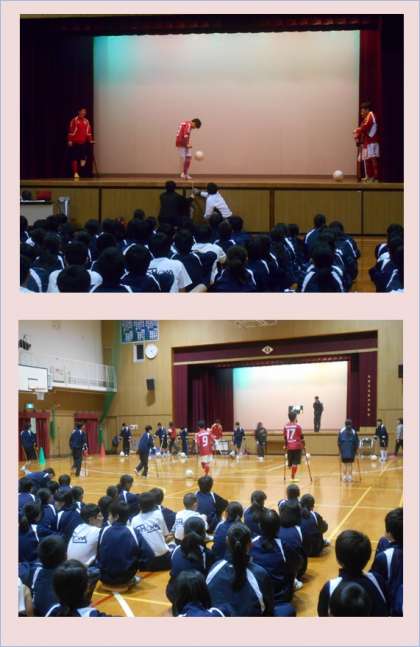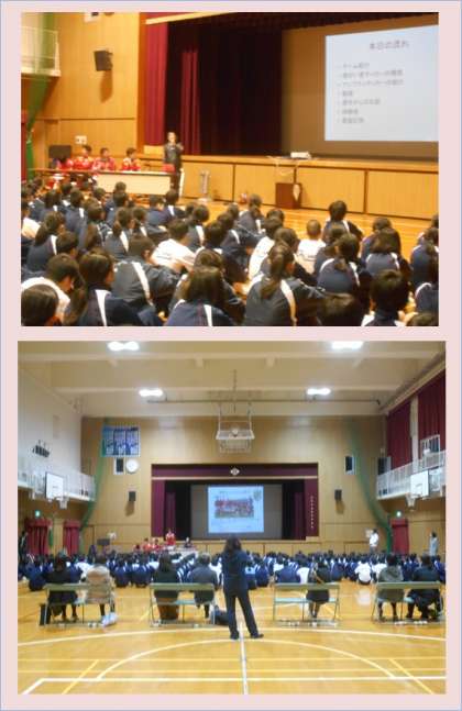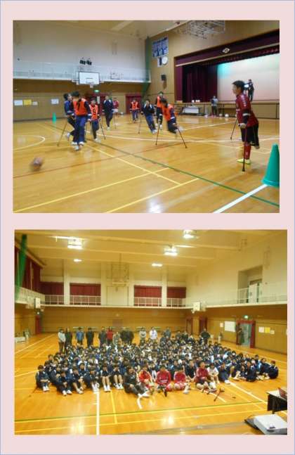 関西セッチエストレーラス〔アンプティーサッカー〕所属の4人の選手とスタッフの冨田様が来校され、身体障がい者スポーツとしてアンプティーサッカーについて、その歴史や魅力を教えていただきました。