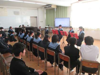 吹奏楽部が放課後の時間を使って、校内アンサンブル発表会を開きました。