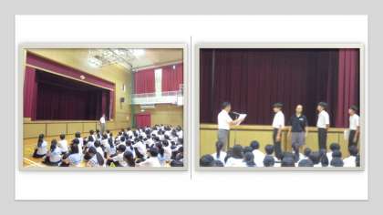 続いて全校集会では、陸上部員への表彰伝達があり、校長先生からは「今後、大阪市秋季総体や総合文化祭の発表に向けて、皆さん頑張ってください!」という激励のお言葉がありました。