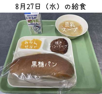 昨日のぶどうゼリーに続き、今日はみかんのダイスゼリー(カットされたゼリー)でした。今年のような猛暑だとよく冷えたゼリーが特に美味しく感じるのは私だけでしょうか。