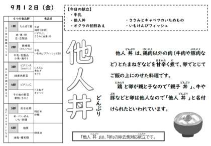 「親子丼」「他人丼」以外に面白い名前の丼はあるのかな?ということで調べてみると「いとこ丼」が出てきました。これは玉子と鴨肉、あるいはサーモンといくらの組み合わせだそうです。他には「木の葉丼」(玉子丼プラスかまぼこ)、「衣笠(きぬがさ)丼」(玉子丼プラス油揚げ)などがあるようです。皆さんは他にどんな面白いネーミングの丼を知っていますか?