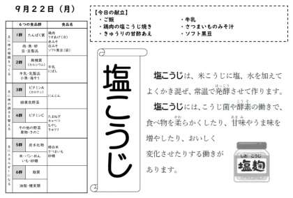 麹(こうじ)は米・麦・大豆などの穀物に麹菌(こうじきん)を繁殖(はんしょく)させて作った発酵(はっこう)食品の原料で、味噌・醤油・日本酒などの発酵食品に欠かせない役割を果たしています。中国が起源とされ、日本には8世紀頃に伝わったそうです。他にこのような細菌を利用した食材としては、納豆菌を利用した納豆、乳酸菌を利用したチーズやヨーグルト、酵母菌(こうぼきん)を利用したパンなどが挙げられます。いつも思うのですが、最初に考え出した人や食べた人ってすごいですよね。その人たちのおかげで美味しいものを食べることができていることに感謝!