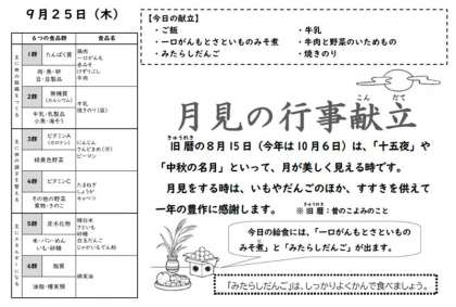 月の満ち欠けをもとにした旧暦(きゅうれき)の8月15日は「十五夜(じゅうごや)」や「中秋(ちゅうしゅう)の名月」といい、日本では平安時代から月を愛でる習慣があります。旧暦では月初めと月末が新月(※)で、月の真ん中である15日に満月になります。今のカレンダーとは微妙にずれているので、今日9月25日は三日月のようですね。ちなみに次の満月は10月7日だそうです。覚えていたら夜空を見上げてみてください。
