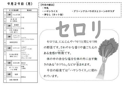 今日のハヤシライスに入っていたセロリはセリ科の植物で、紀元前8世紀頃からすでに香料や薬草として使われていたそうです。日本には16世紀終わり頃に起こった朝鮮出兵のときに伝わりました。少しクセがあるので好き嫌いが分かれるかもしれませんが…まあ「育ってきた環境が違うから好き嫌いは否(いな)めない」ですね。