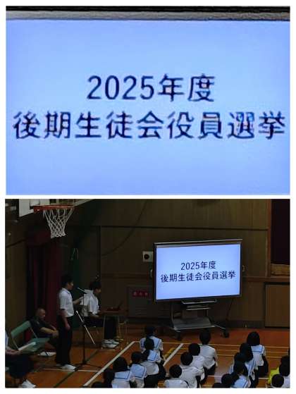本日、6限目に『2025年度 後期生徒会役員選挙 立会演説会』が行われ、5名の立候補者よる演説がありました。