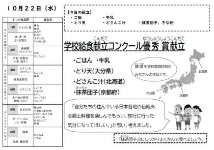 今日は令和6年度の学校給食献立コンクールで優秀賞を獲得した献立でした。