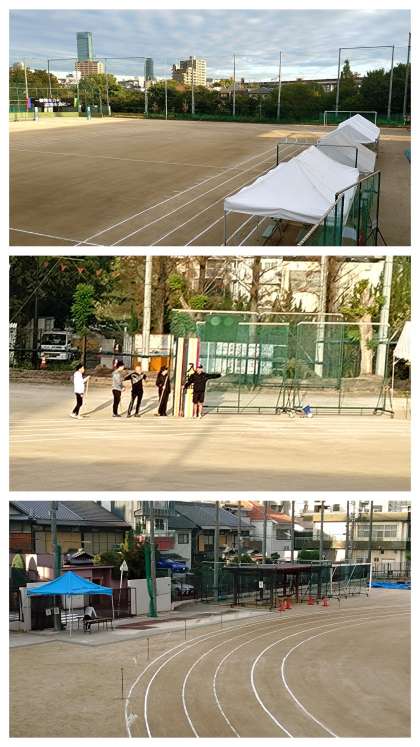 本日、予定通り『第79回 体育大会』を開催します。先生方は、早朝より最終点検。「ご苦労さまです!」