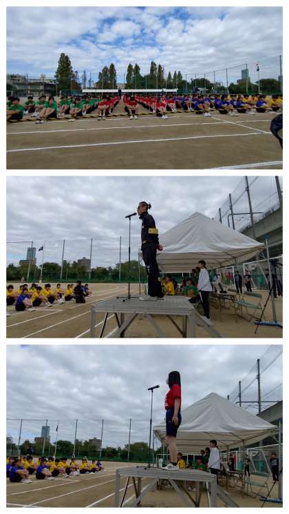 体育大会が始まりました。開会式の様子です!メリハリのある行動で、来賓の方々からお褒めの言葉をいただきました。