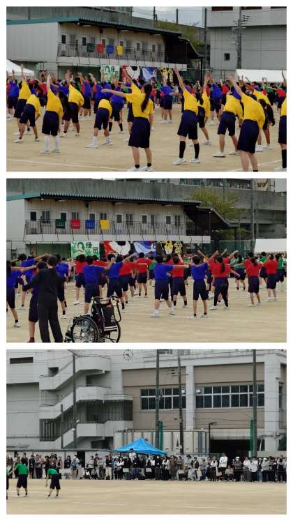 プログラム1番 ラジオ体操。多くの保護者の方々にご来校いただいました。