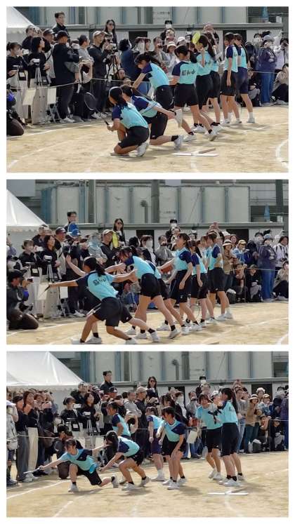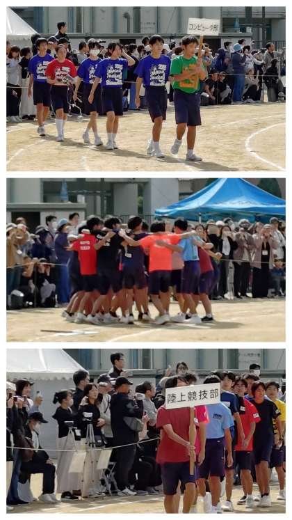 コンピュータ部・陸上競技部・バドミントン部・男子バスケットボール部による部活動行進の様子です。