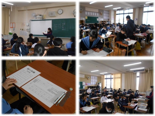 来年1月14日(水)には1・2年生のチャレンジテストがあります。1年生にとっては初めての外部テストなので、今日の午後はチャレンジテストをやってみよう!…ということでいくつかの教科に“チャレンジ”してみました。普段の定期テストと同じく、落ち着いて問題を解くことができたでしょうか?マークの塗り方も丁寧にお願いしますね。