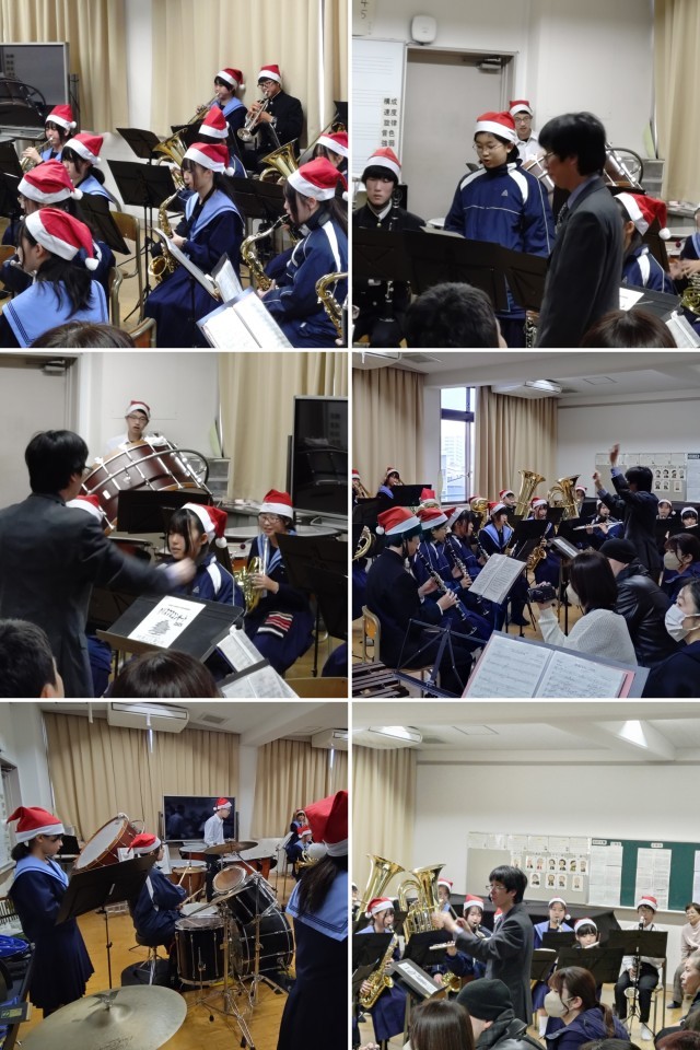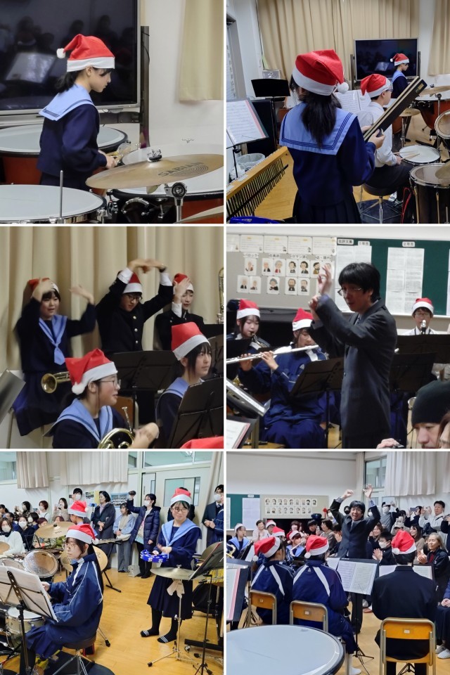 本日、吹奏楽部による『クリスマスコンサート2025』(午前の部)が本校4階の音楽室で開催されました。多くの保護者や生徒たちも集まり大いに盛り上がりました。