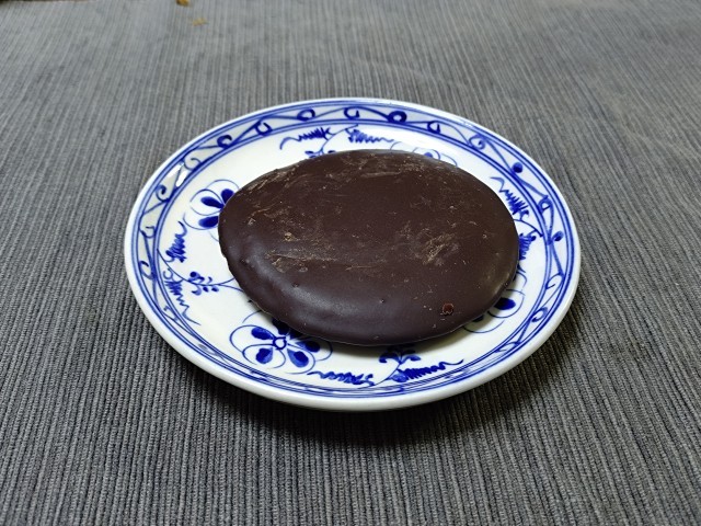 「家に帰ったらケーキがあるのか・・・」と思いきや、せんべいみたいなチョコのお菓子でした(下の写真)。「残念!」