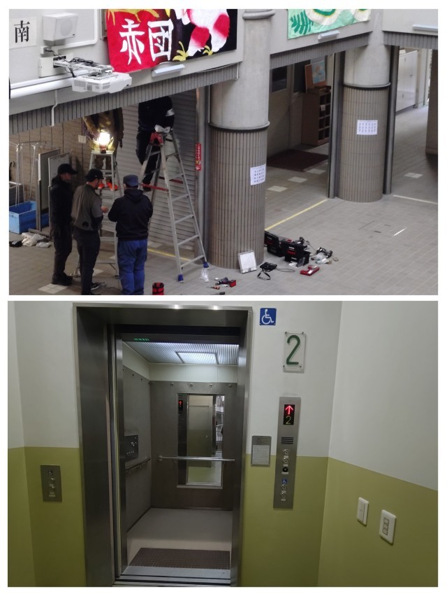 冬休みも残りあと一日となりました。学校では、今日は防火シャッターの点検があり、昨日少しおかしくなったエレベーターも正常な状態となり、いよいよ新学期を迎える準備万端です(写真)。