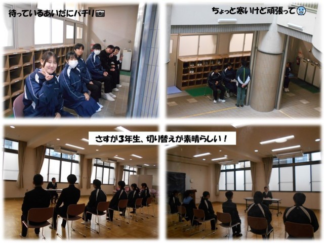 3年生は受験に向けて、校長先生とグループ面接の練習です。廊下で待機しているときは少し緊張しつつもリラックスしていましたが、部屋に入ると切り替えてバチっと決めるところさすが3年生だなと感じました。卒業まであと少し、先輩らしい姿をたくさん後輩に見せてあげてください。