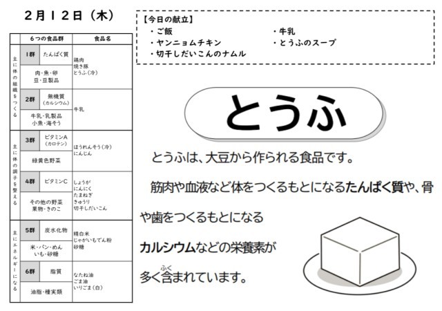 ⑤ヤンニョムチキン:鶏のから揚げに甘辛いコチュジャンをからめるだけで出来上がり!今日の給食も美味しかったですか?
