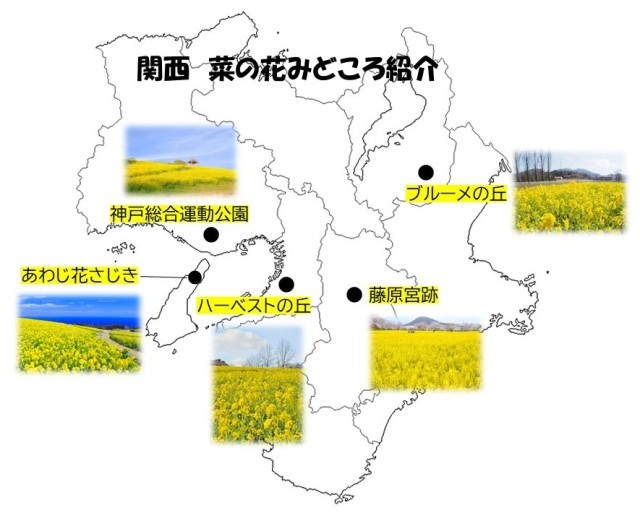 菜の花は2月から5月頃に鮮やかな黄色の花を咲かせ、早春の訪れをつげる花として知られています。あたり一面、絨毯(じゅうたん)のように広がるようすは絶景ですね。そこで今日は、関西エリアで菜の花を鑑賞できる場所を紹介します。