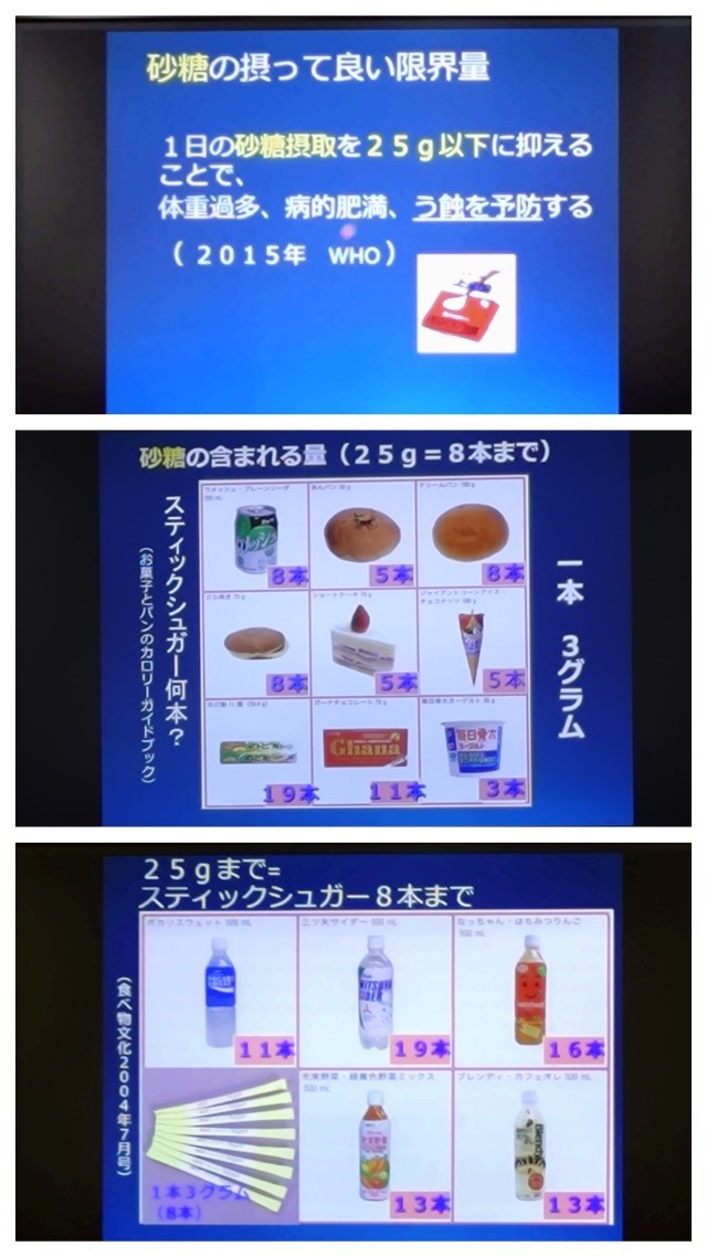 砂糖を取り過ぎることは、歯にとってよくないことは知られていますが、ふだん私たちが食べるもの・飲むものにこんなに砂糖が含まれていたなんて知りませんでした。コーラやポカリなども飲み過ぎると歯を溶かしてしまうようです。生徒の皆さんは、今回学んだ知識をもとに、歯磨きを丁寧に行い、歯医者さんには早めに行って予防し、毎日の食事はよく噛んで食べることを心がけ、毎日健康に生活できるよう努力しましょう。