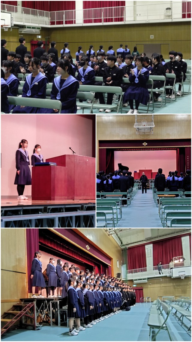 いよいよ明日、『第79回 卒業式』を10時より開式します。本日は、午前中に予行が行われ(下の写真)、在校生代表として参列する2年生の意識も高く、「3年生の先輩方へ感動の卒業式にしよう!」という気持ちの伝わる態度でありました。
