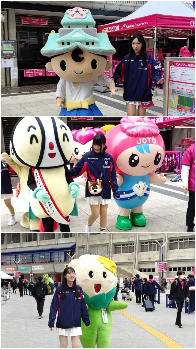 セレッソ大阪のイベントに本校サッカー部員が着ぐるみを着て参加しました。思っていたよりもかなりの重労働だったようで、「見た目は可愛くても中に入っている人は本当にたいへんだ!」という経験ができました。部員からは「めちゃくちゃしんどい!」「部活の練習の方がまし!」などの声もありましたが、「午後からもファイト!」